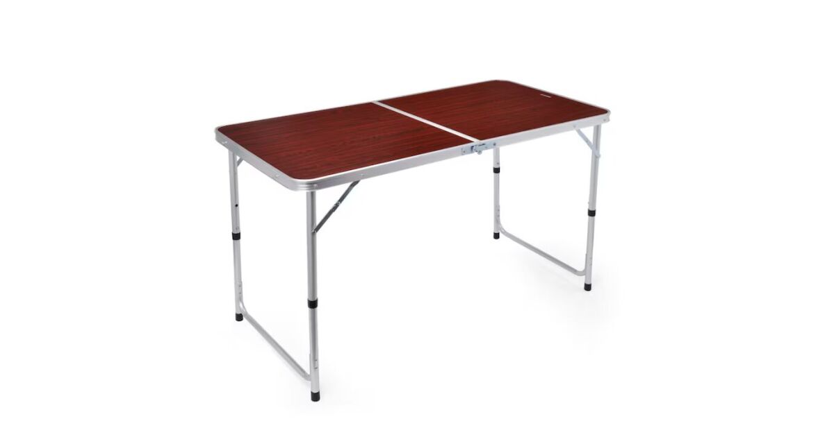 Ezt a terméket így is ismerheted: Macvi® Meteor összecsukható kempingasztal, könnyű alumínium, MDF lap 120x60 cm, állítható magasságú, bőrönd típusú, hordozható
