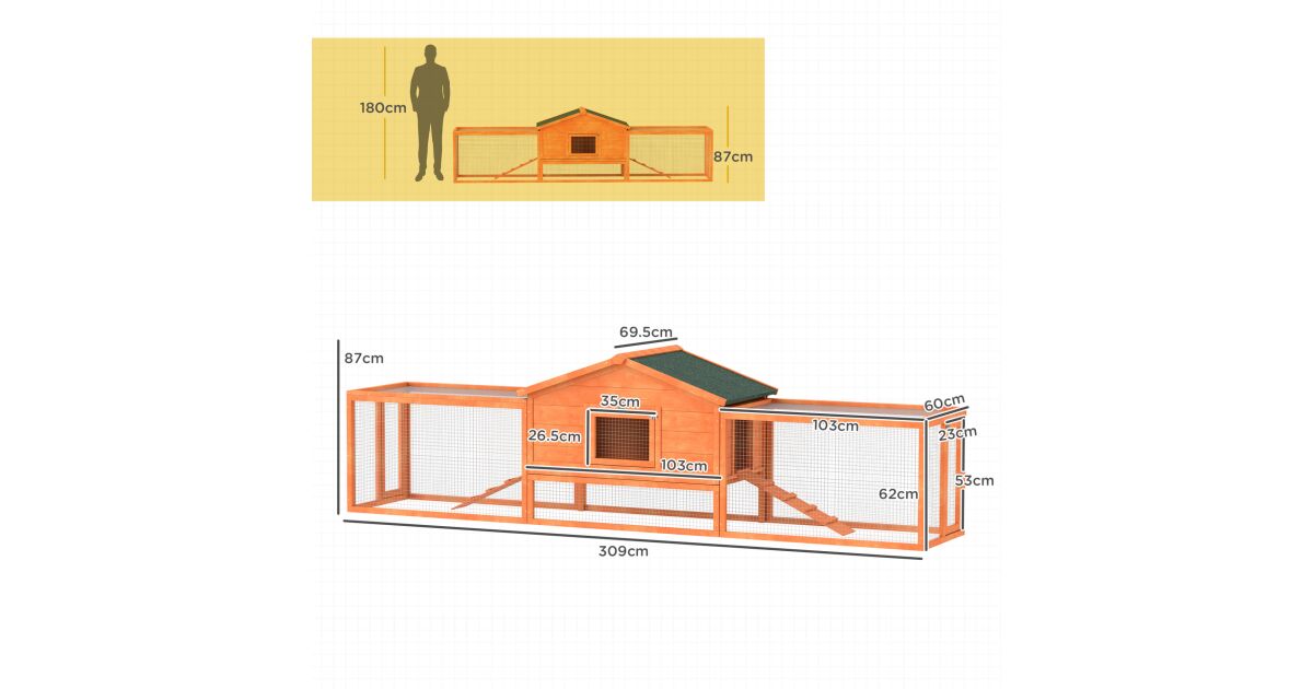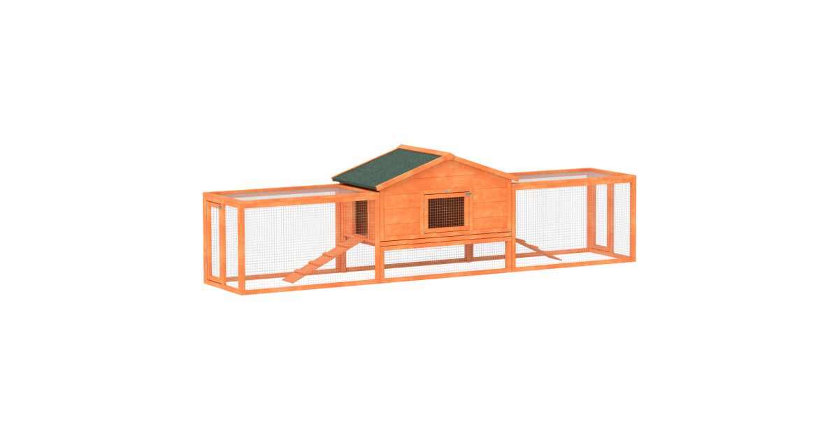 A PawHut narancssárga nyúlketrec ideális megoldás nyulak, tengerimalacok és más kisállatok számára. Ez a tágas, fából készült ketrec biztonságos és kényelmes életteret biztosít a szabadban. A ketrec tartalmaz egy házikót és két különálló kifutót, így kedvenceidnek elegendő helyük lesz a játékra és pihenésre.
