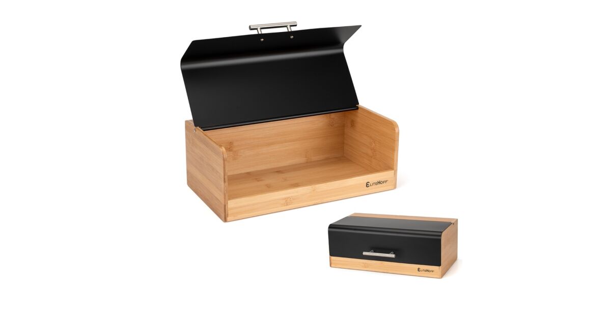 Ez a modern kenyértartó ötvözi a bambusz természetes szépségét a fekete fém eleganciájával, így stílusos kiegészítője lehet konyhádnak. Nem csak praktikus, de a konyhapulton is remekül mutat! ✨