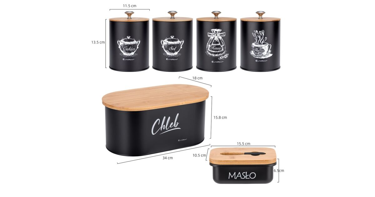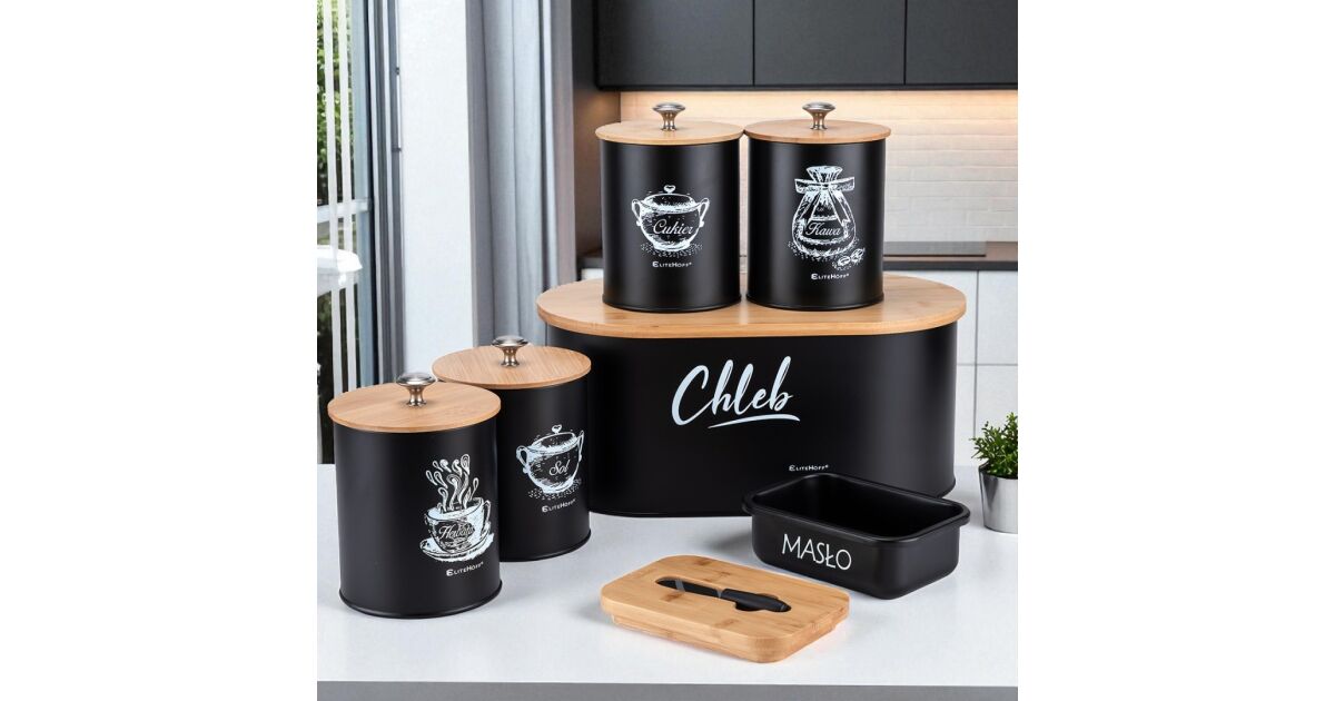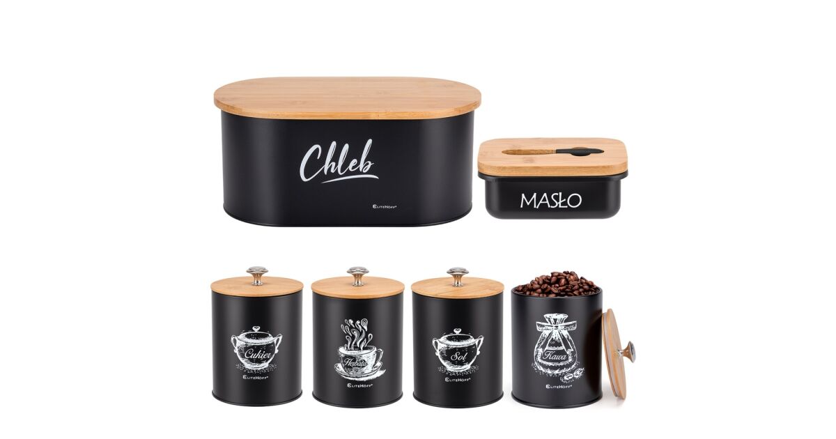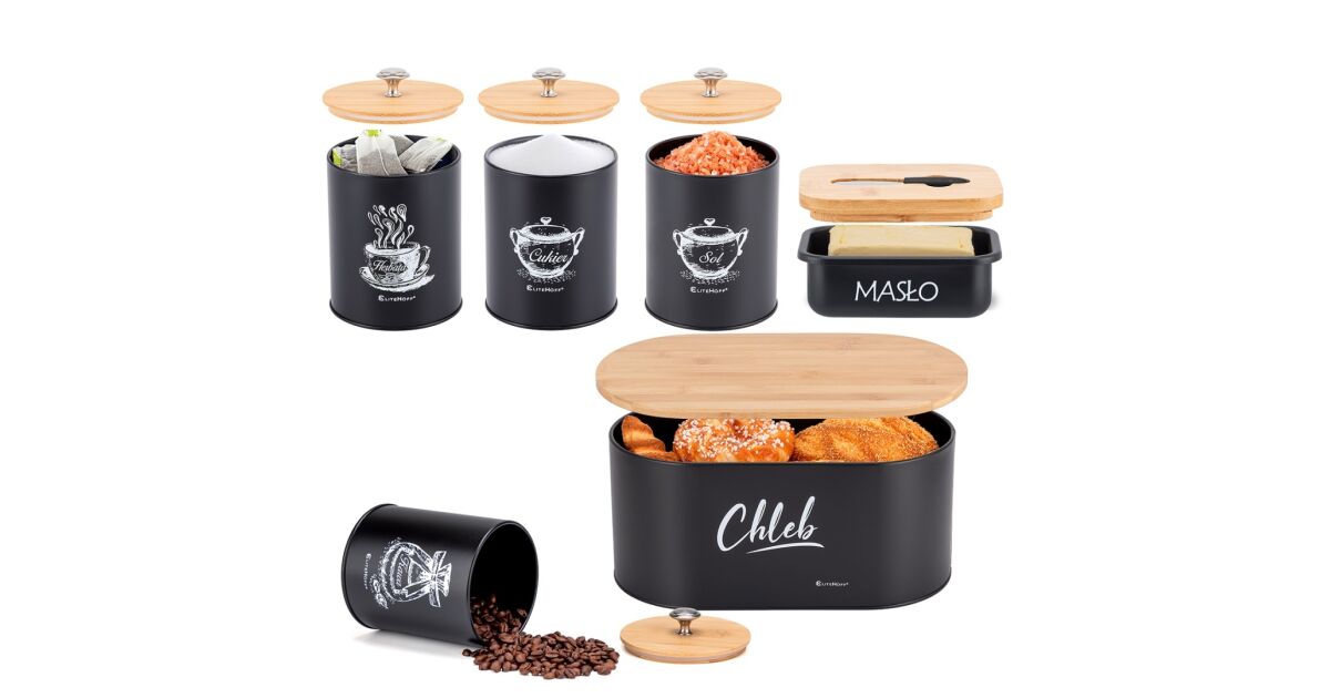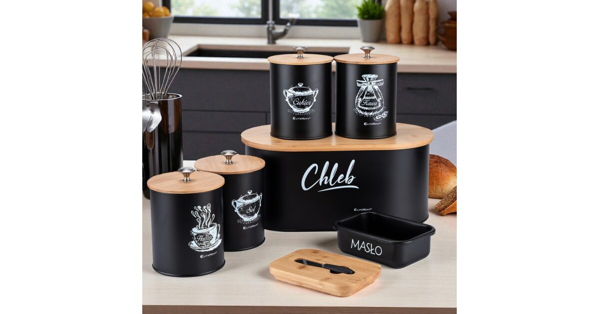 - ✅ Praktikus: A kenyértartó segít megőrizni a kenyér frissességét, a tárolóedények pedig ideálisak kávé, tea, cukor és só tárolására.