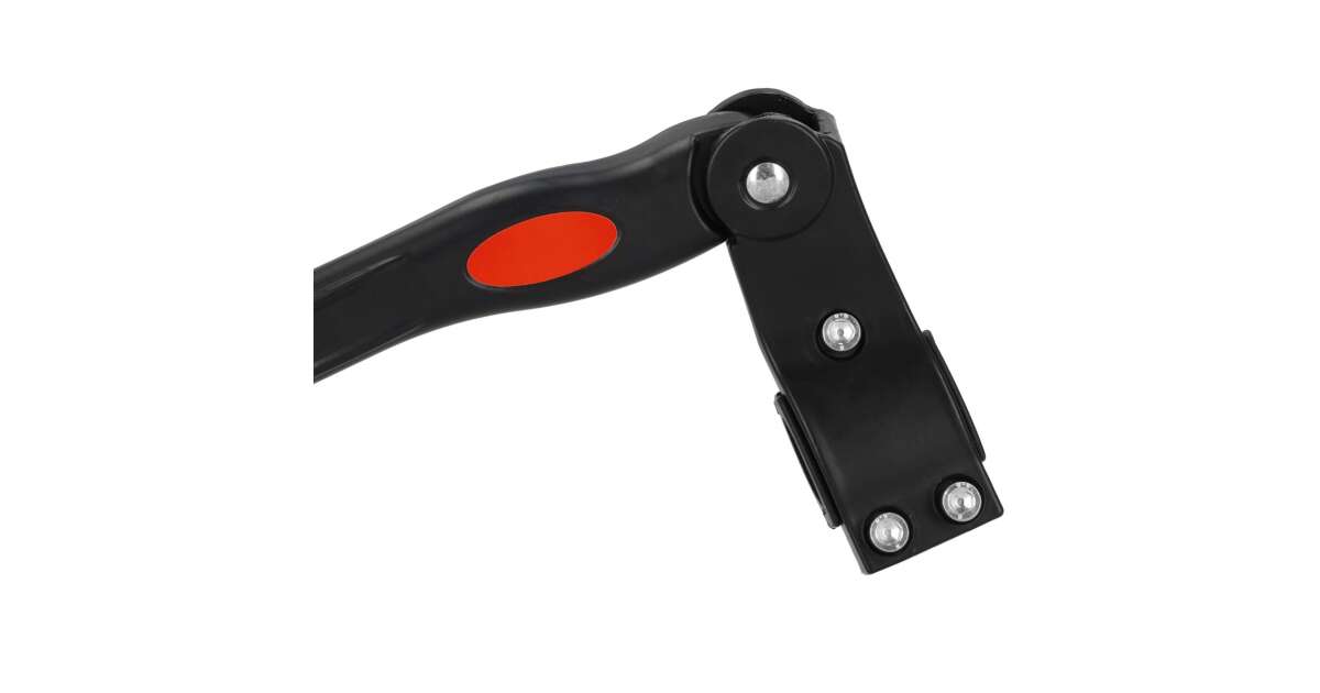 Könnyen felszerelhető és stabil alumínium kerékpár támasztó, amely biztosítja kerékpárod biztonságos tárolását. A beépített zsanérnak köszönhetően könnyedén összehajtható, így helytakarékos tárolást tesz lehetővé. A gumírozott talp megakadályozza a csúszást, biztosítva a kerékpár stabilitását.