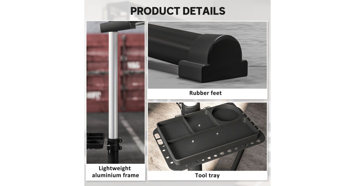 Ezt a terméket így is ismerheted: HOMCOM Kerékpárjavító Állvány Állítható Magassággal, 360°-ban Forgatható és Összecsukható, 82x106x107-160 cm, Fekete