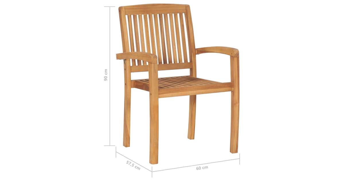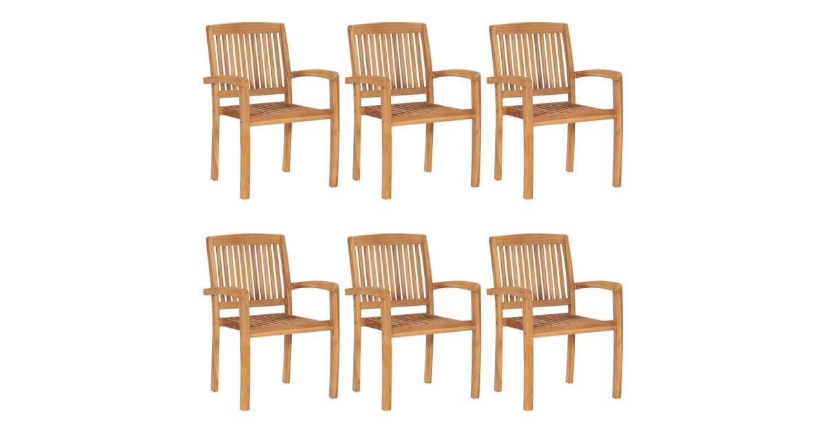 Ez a 6 darabos, rakásolható tíkfa kerti szék garnitúra tökéletes választás, hogy egy csipetnyi rusztikus bájt csempésszen a kertedbe, verandádra vagy étkeződbe. Élvezd a stílust és a kényelmet a szabadban!