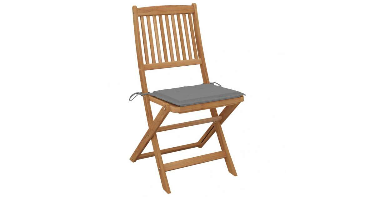 Akácfa Kerti Szék Szett – 8 db Összecsukható, Szürke Párnákkal vélemények