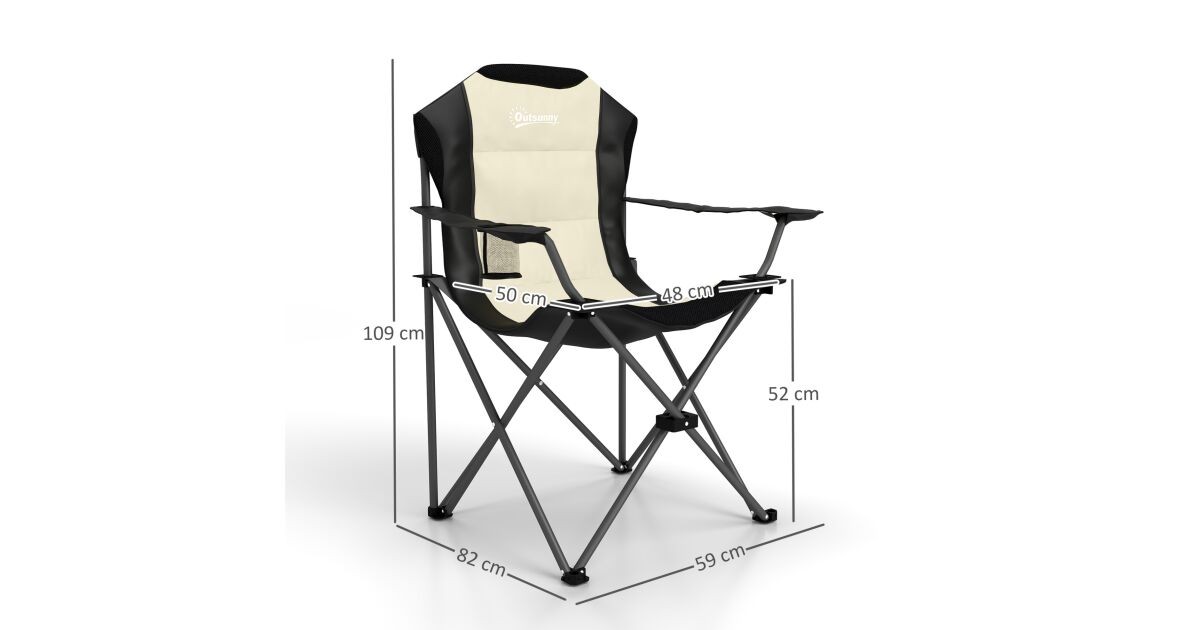 Outsunny 2 db-os összecsukható kempingszék szett magas háttámlával, pohártartóval és hordtáskákkal, krémszínű vélemények