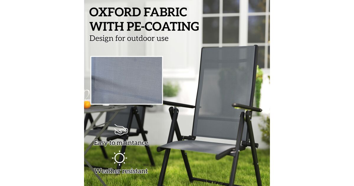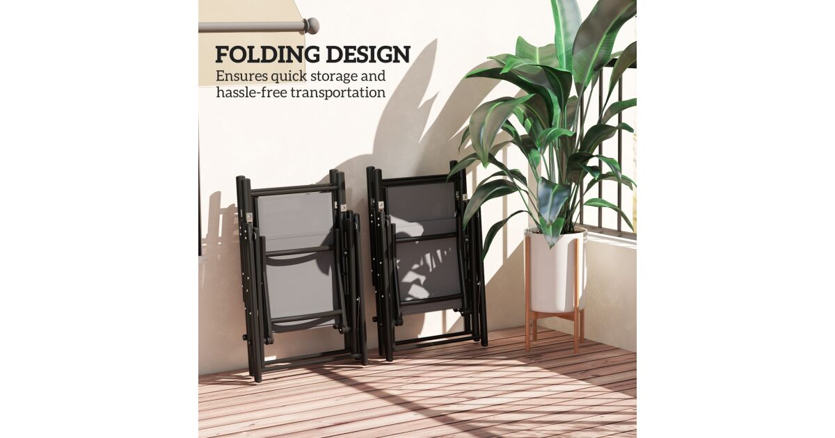 Élvezze a napsütést és a friss levegőt az Outsunny összecsukható kerti székeivel! Ez a szett tökéletes választás kertekbe, teraszokra és erkélyekre, ahol kényelmesen pihenhet vagy vendégeket fogadhat.