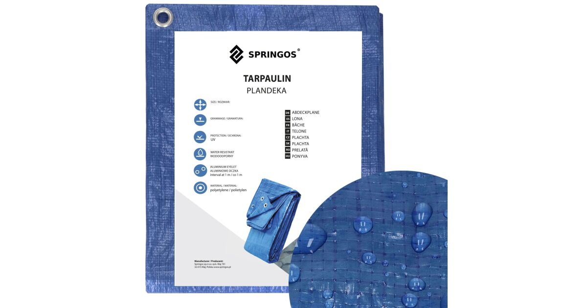 Ezt a terméket így is ismerheted: Springos vízálló Takaróponyva 4x8m 60g/m², UV védelemmel ellátott - Kék