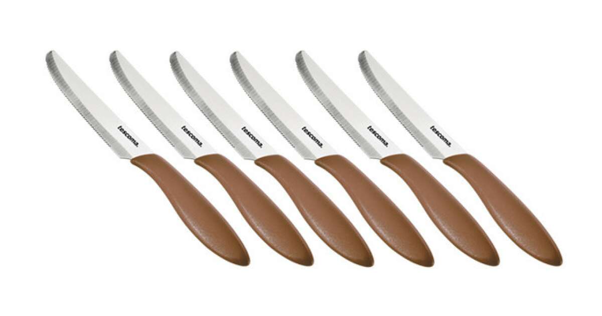 Ez a 6 darabos PRESTO evőkés szett tökéletes választás mindennapi használatra. A rozsdamentes acél pengék élesek és tartósak, míg az ergonomikus, barna műanyag nyéllel kényelmesen foghatóak.