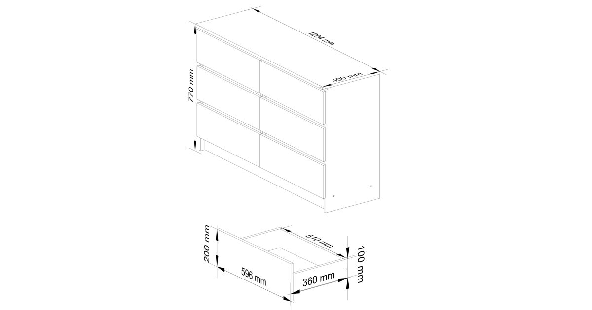 A komód nem csak praktikus, de stílusos is, könnyedén illeszkedik bármelyik otthoni környezetbe. A modern dizájn és a minőségi anyagok hosszú élettartamot biztosítanak. A fiókok mérete lehetővé teszi a ruhaneműk, törölközők és egyéb holmik praktikus tárolását. A komód könnyen tisztítható, így mindig makulátlanul tartható.