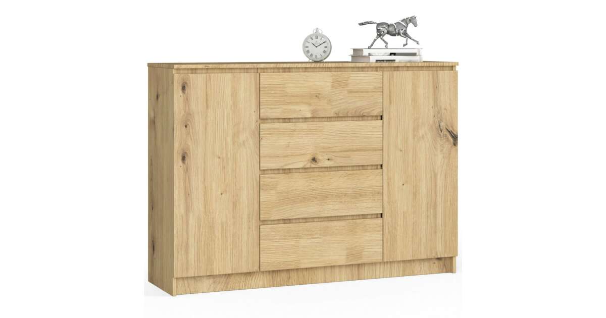 Akord - Stílusos Artisan Tölgy Komód K140 2 Ajtós 4 Fiókos, CLP Bútor Rendszerrel, 138 cm Széles, Matt Felületű, Önösszeszerelésű vásárlás: