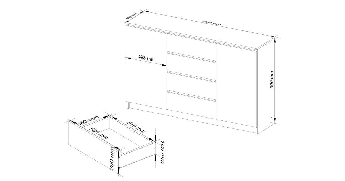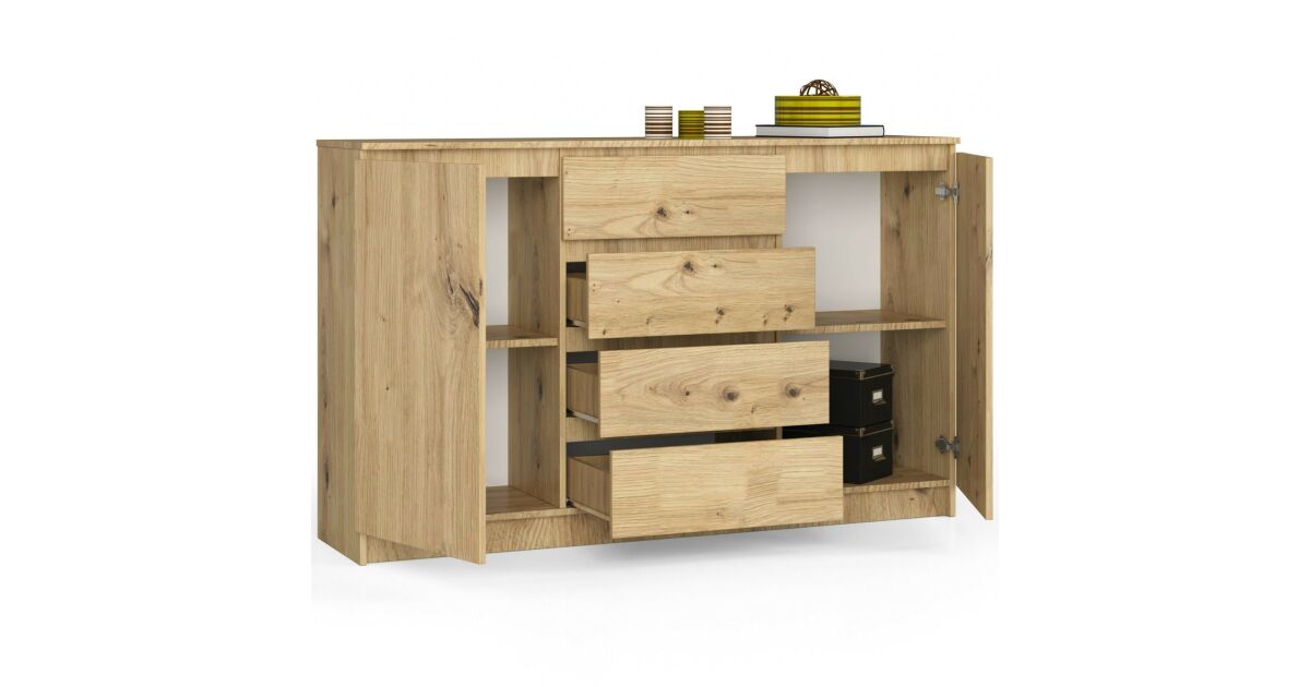 Akord Komód K160 2D 4F CLP Artisán Tölgy - 160x99x40 cm, Laminált lap, 4 fiók, 2 ajtó, Mat bevonat, Összeszerelés szükséges leírása
