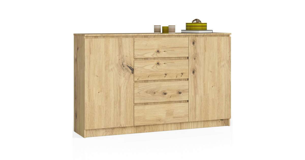 Ezt a terméket így is ismerheted: Akord Komód K160 2D 4F CLP Artisán Tölgy - 160x99x40 cm, Laminált lap, 4 fiók, 2 ajtó, Mat bevonat, Összeszerelés szükséges