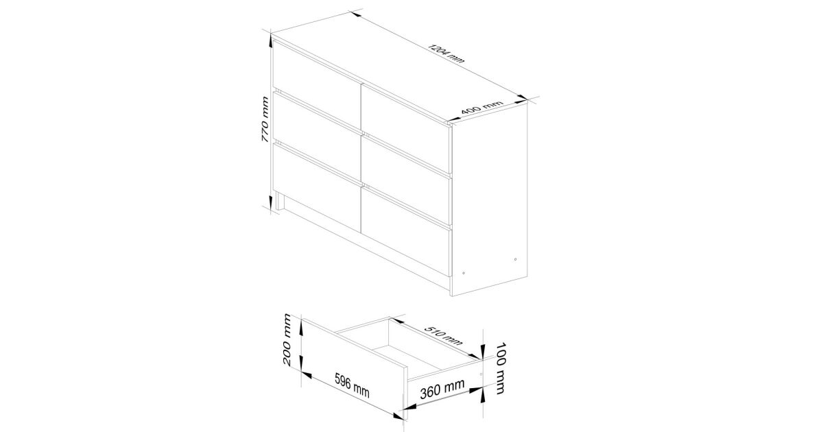 Ezt a terméket így is ismerheted: Fiókos szekrény 6 fiókkal, laminált faforgácslap, 120x40x77 cm, sonoma tölgy és matt fehér