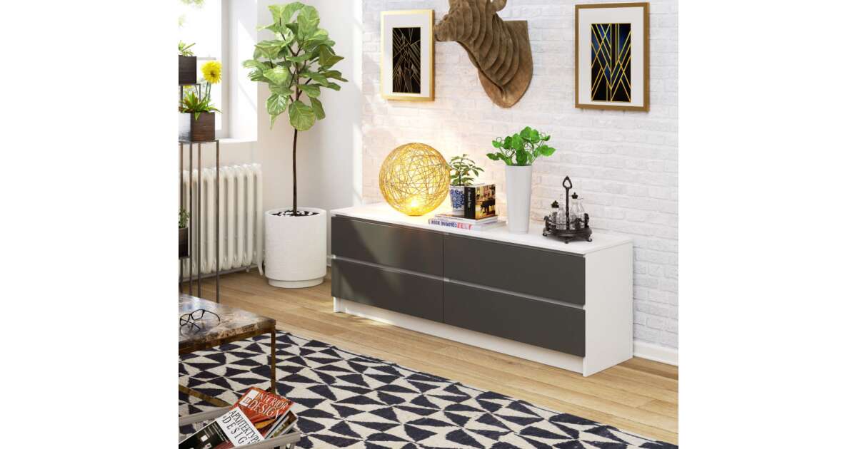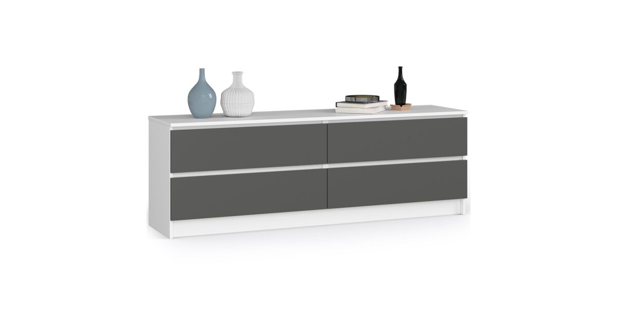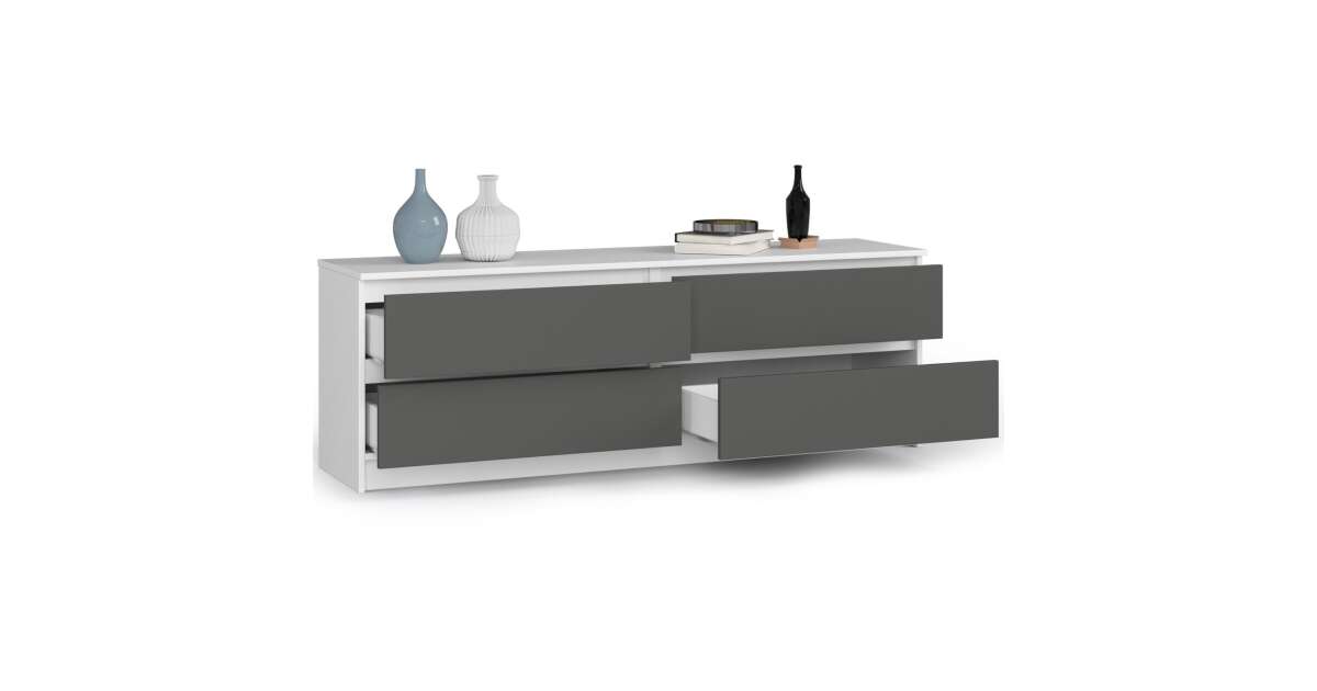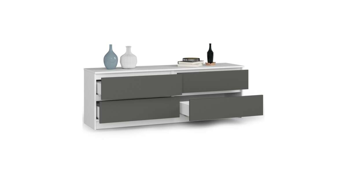 Akord CLP K160 Komód 4 fiók fehér/grafit szürke, 160 cm széles, laminált lap, ABS élek, matt felület, önszerelési lehetőség, modern design vásárlás: