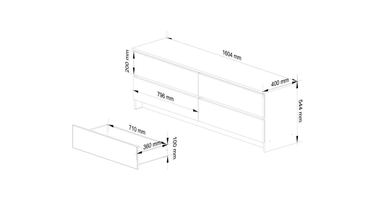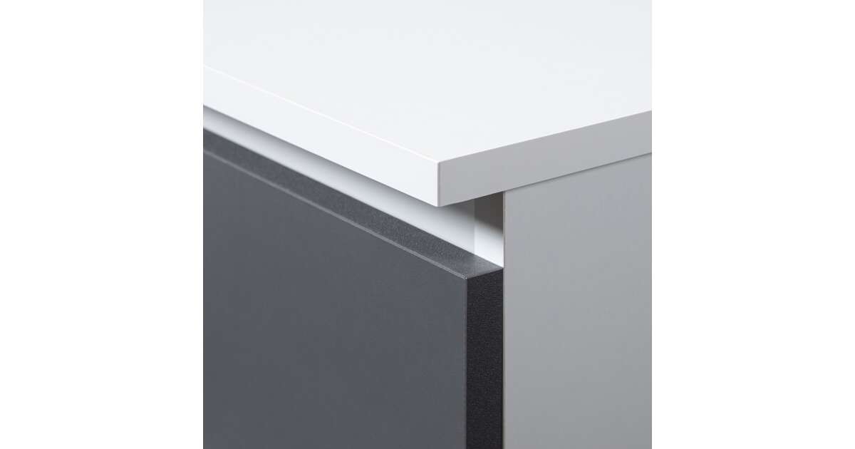Ezt a terméket így is ismerheted: Akord CLP K160 Komód 4 fiók fehér/grafit szürke, 160 cm széles, laminált lap, ABS élek, matt felület, önszerelési lehetőség, modern design