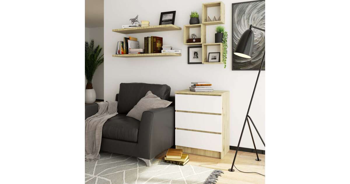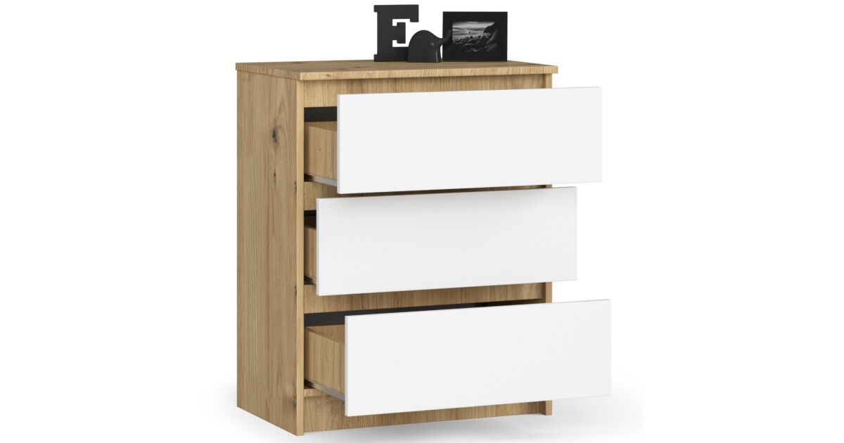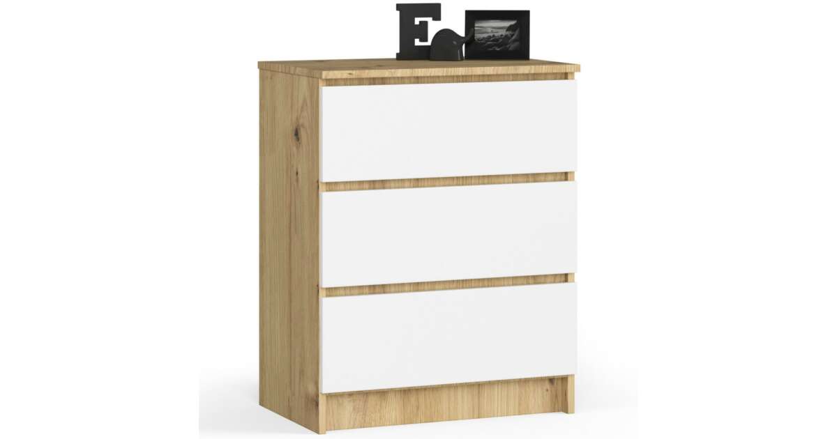 Akord 3 Fiókos Komód - Tölgy/Fehér - Tökéletes Tárolómegoldás a Házadba 🏡