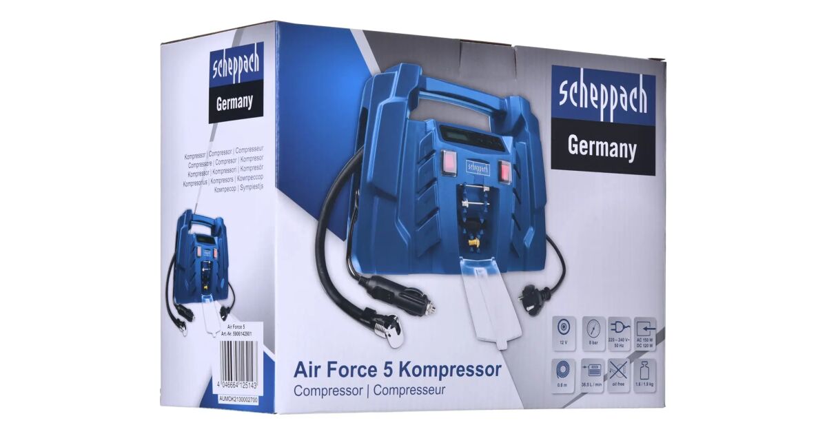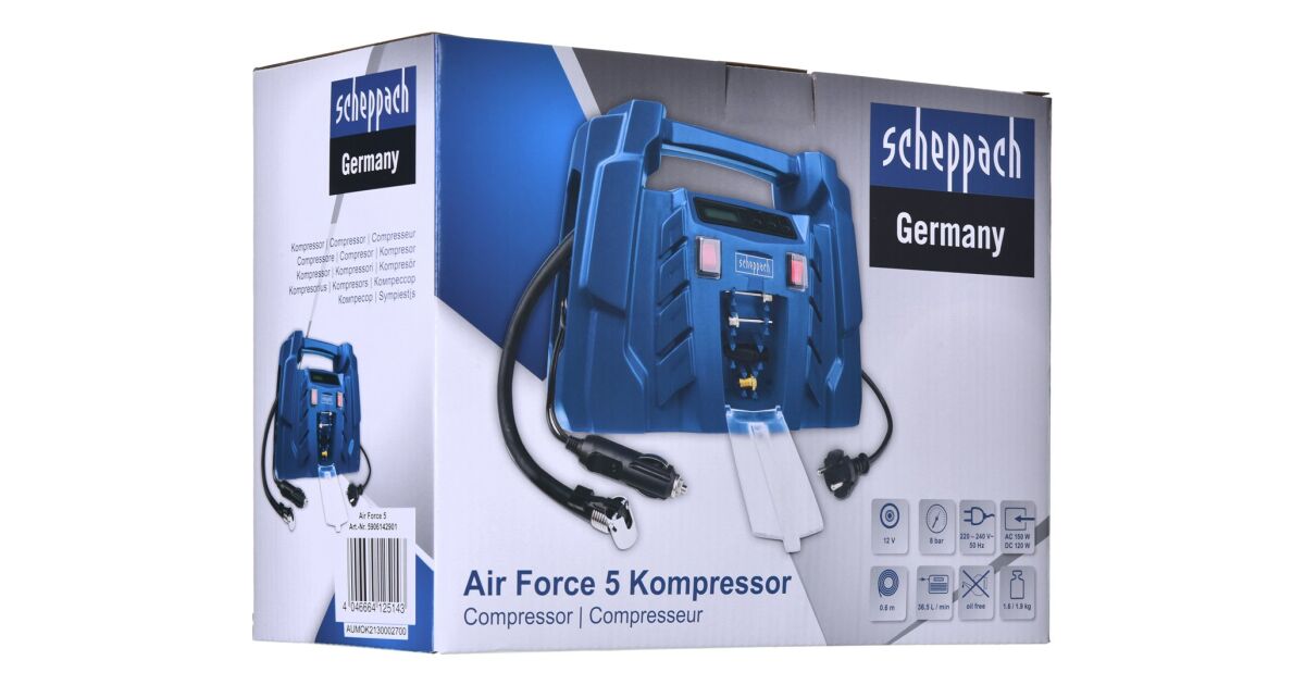 Scheppach AIR FORCE 5 olajmentes Táskakompresszor, 8 bar, 12/230V, Kék vásárlás: