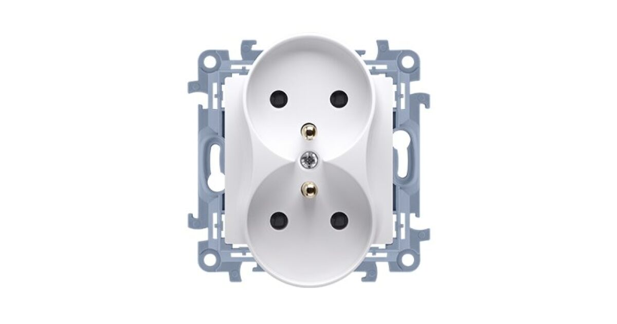 Ezt a terméket így is ismerheted: Dupla földelt aljzat áramút redőnyökkel (modul) 16 A, 250 V~, csavaros sorkapcsok, fehér Simon10