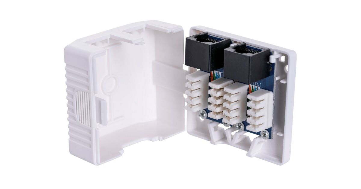 Ezt a terméket így is ismerheted: Lanberg OU6-0002-W UTP CAT6 2 db RJ45 csatlakozós fali konnektor