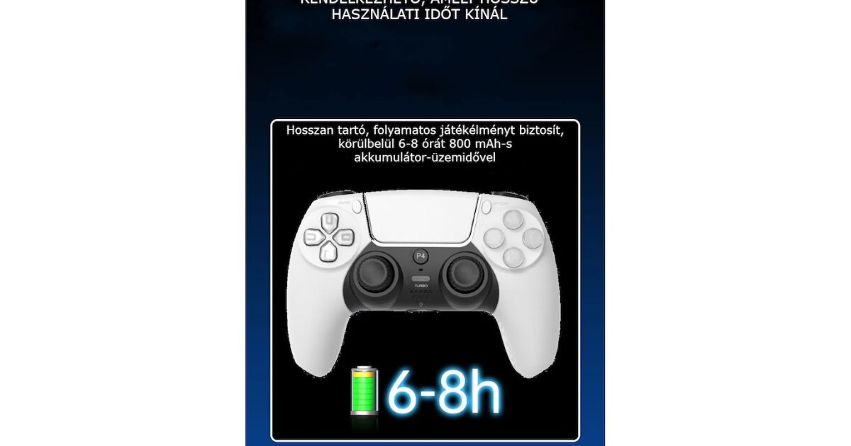 Vezeték nélküli PS4 kontroller, fehér, turbó funkció, 800 mAh akkumulátor-üzemidő, kettős vibrációs rendszer, 350 g, megvilágított gombok vélemények