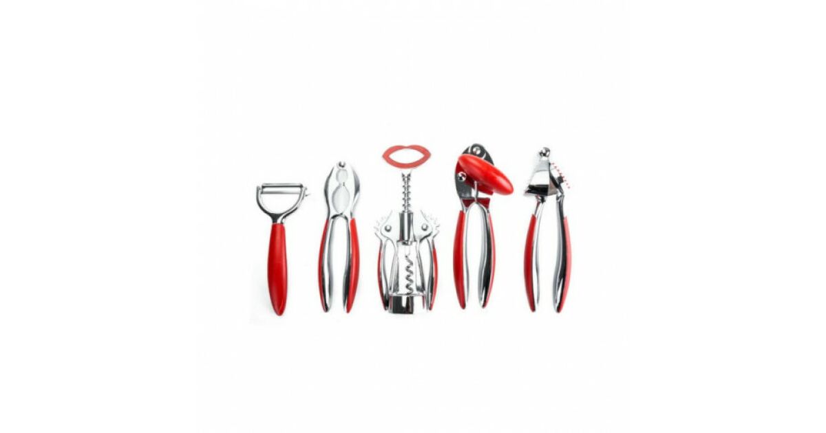 Ez a 6 részes konyhai eszköz készlet nem csak praktikus, de elegáns kiegészítője is lesz konyhájának. A piros szín vidámságot visz a főzésbe, a rozsdamentes acél pedig garantálja a hosszú élettartamot.