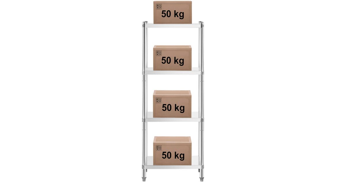 Royal Catering Rozsdamentes Acél Tároló Állvány - 200 kg Teherbírás 🏢