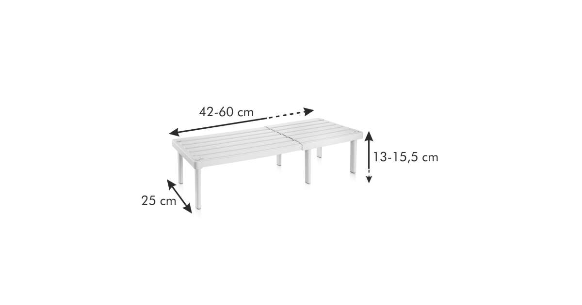 Ez az állítható polc remek megoldás a konyhai tárolóhely bővítésére. Könnyen beilleszthető minden általános konyhaszekrénybe, és rugalmasan igazítható a helyhez.