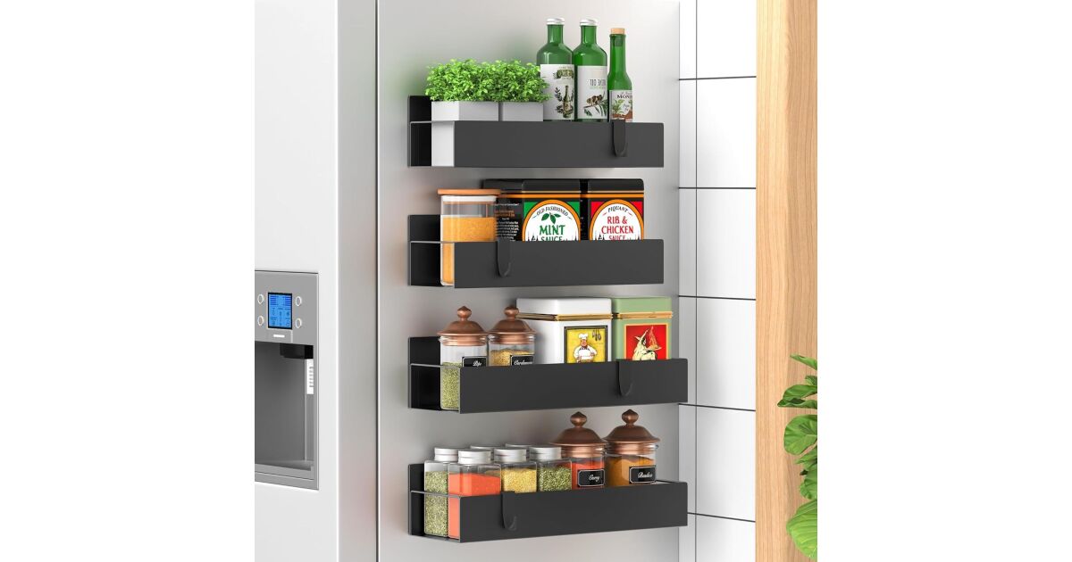 Ezt a terméket így is ismerheted: Macvi® 4 db-os mágneses polc szett hűtőszekrénybe és konyhába, fűszerrendező 4 kampóval, 5 kg-os stabil fém tartóval, 2 méretben, fekete, 27x8,5x7,5 cm / 29,5x9,5x7,5 cm / 29,5x9,5x7,5 cm