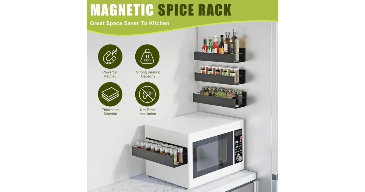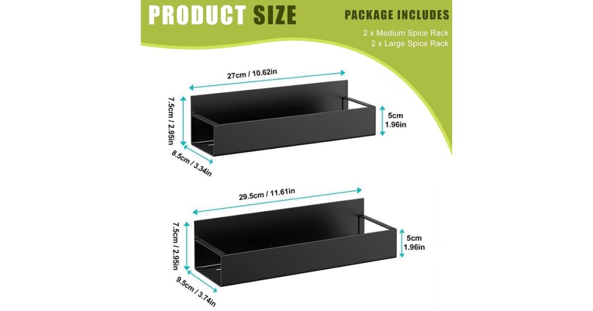 - 💪 Erős mágneses rögzítés: Akár 5 kg-ot is elbír polconként, így biztonságosan tárolhatod a fűszereket és egyéb konyhai kellékeket.