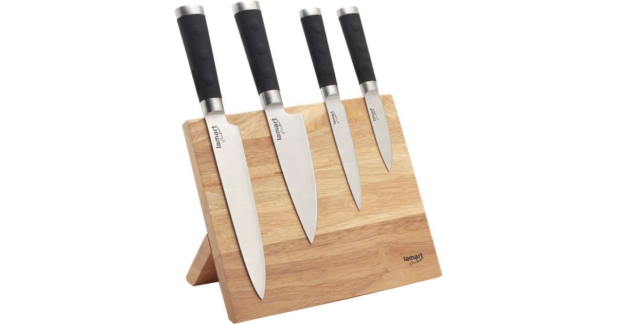 Lamart LT2026 4 részes késkészlet fa mágneses állvánnyal: Kiváló minőségű konyhai eszközök 🔪