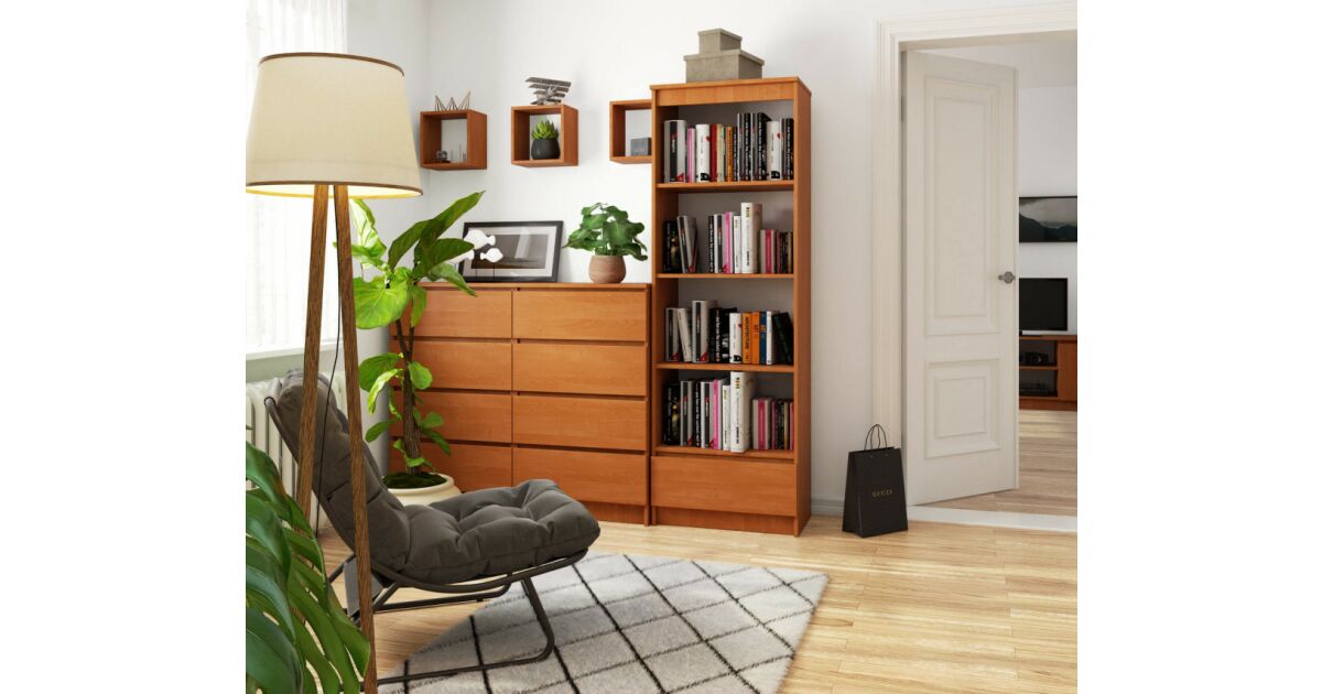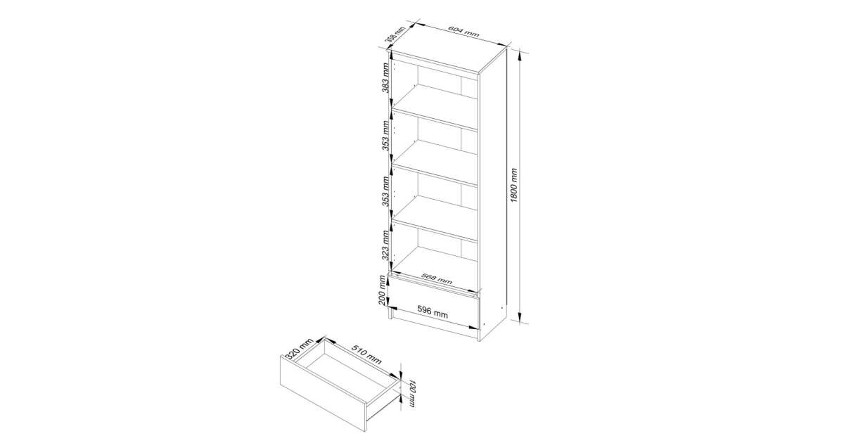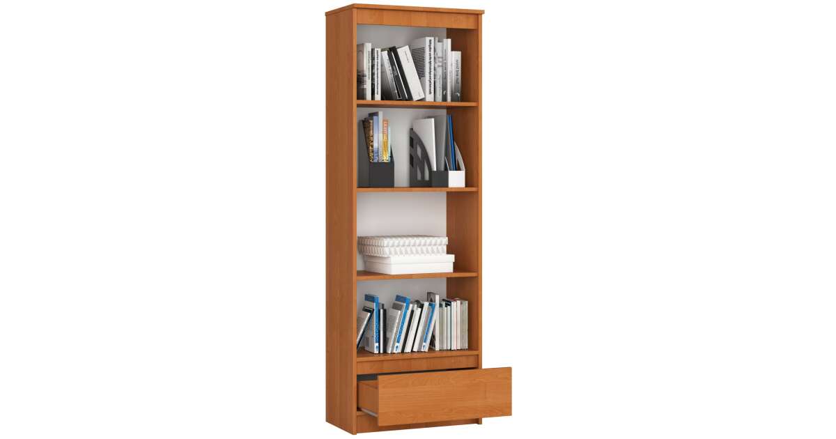 Ez a stílusos és praktikus könyvespolc ideális megoldás könyvek, iratok és egyéb tárgyak tárolására otthoni vagy irodai környezetben. A modern égerfa dizájn bármilyen helyiségbe jól illeszkedik.