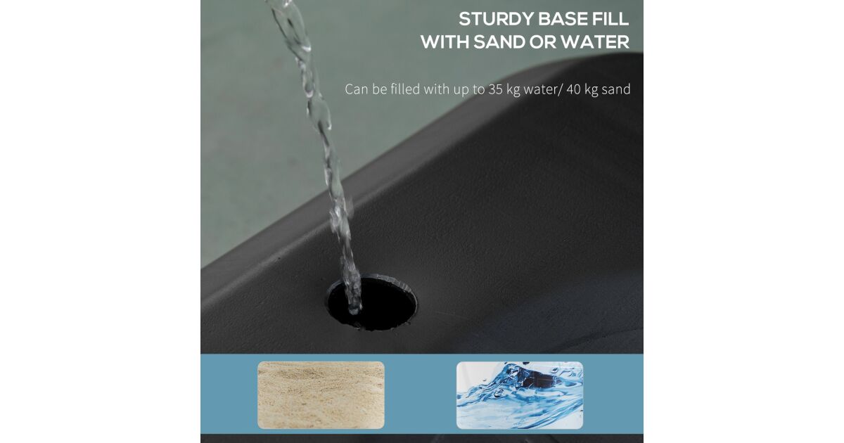 - Stabil alap: A talp vízzel (35 kg), homokkal (40 kg) vagy ezek keverékével (45 kg) tölthető fel a maximális stabilitás érdekében. Így a hevesebb játék sem okoz problémát!