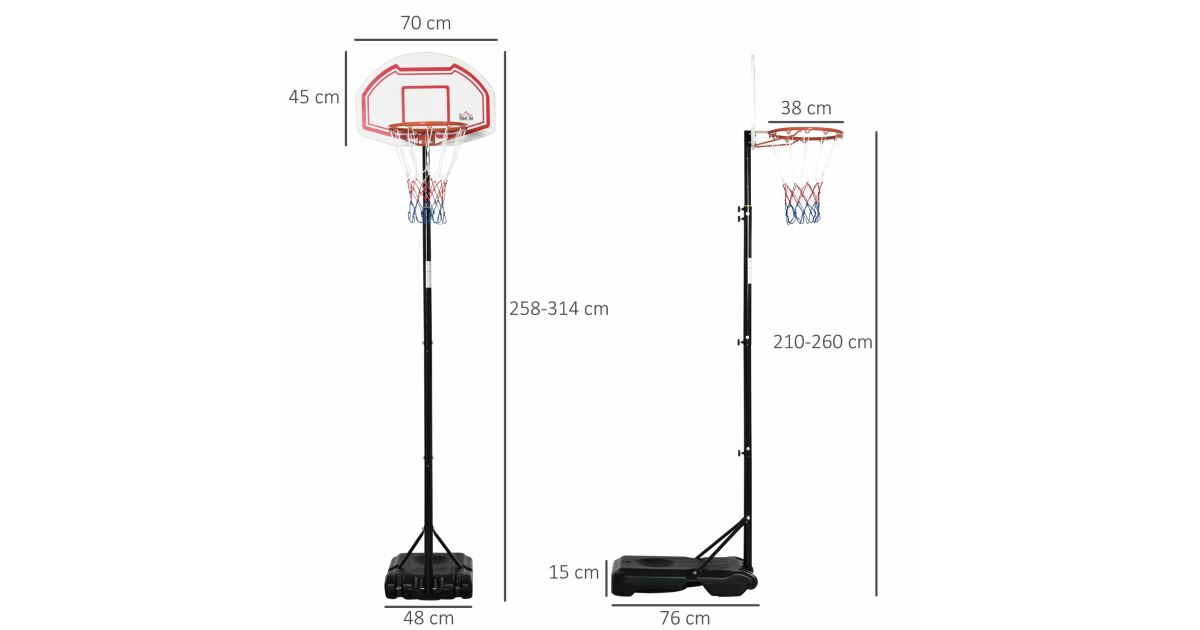Ezt a terméket így is ismerheted: HOMCOM Magasságban Állítható Kosárlabda Palánk, Párnázott Talppal és 2 Görgővel, Kosárlabda Palánk, 70x45x258-314 cm, Piros