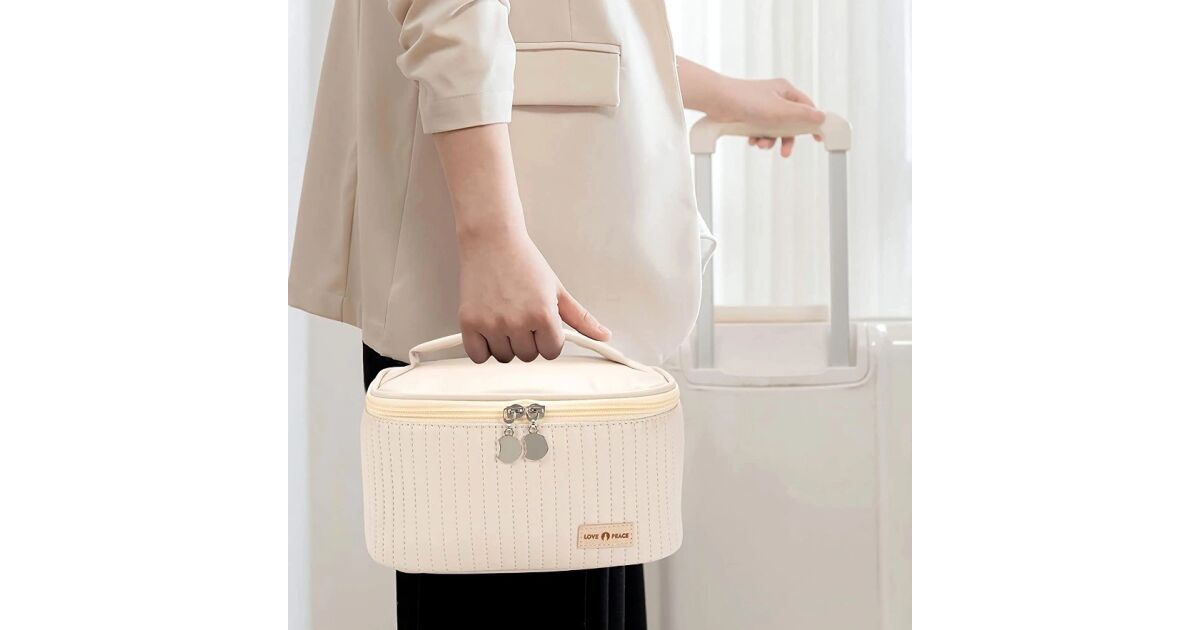 Elegáns Bézs Eco Bőr Kozmetikai Táska - Tökéletes Rendszerezés Stílusosan! 👜
