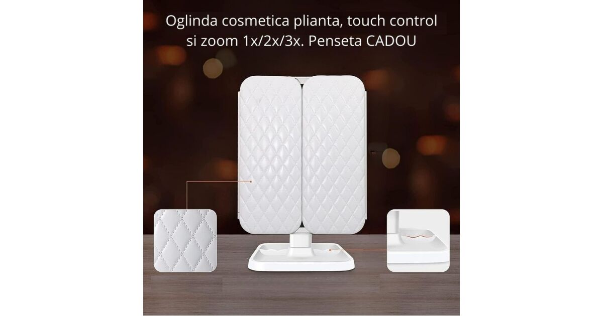 Ezt a terméket így is ismerheted: Sminkelő tükör LED megvilágítással, ON/OFF érintőkapcsoló gomb, 1x/2x/3x zoom