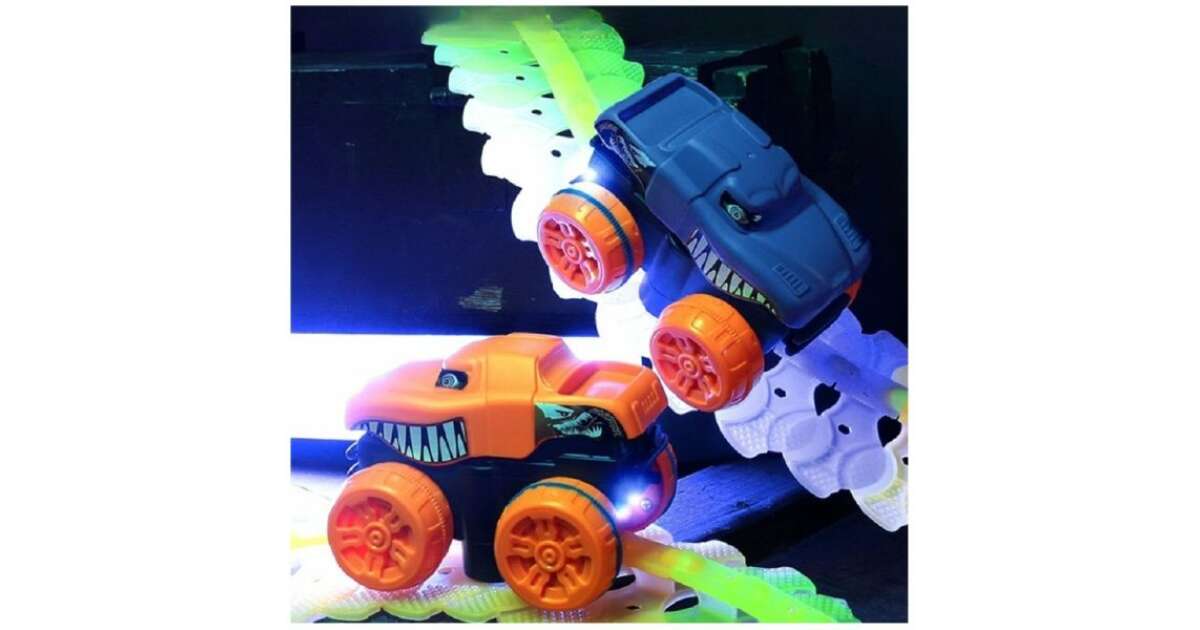 - Sötétben világító elemek: A fluoreszkáló autópálya és a dínós autók varázslatos hangulatot teremtenek a játék során. ✨