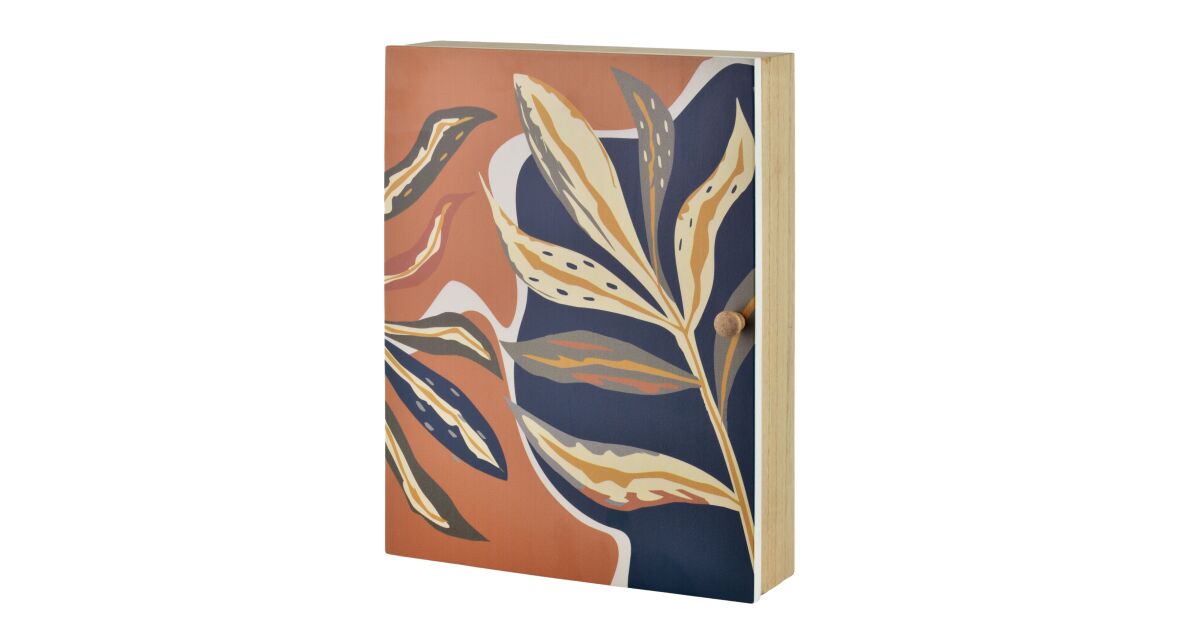 STACY Mió-sötétkék levélmintás kulcstartó doboz 26x20x5,5 cm