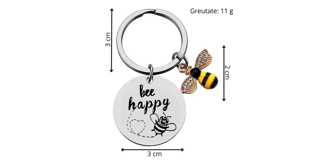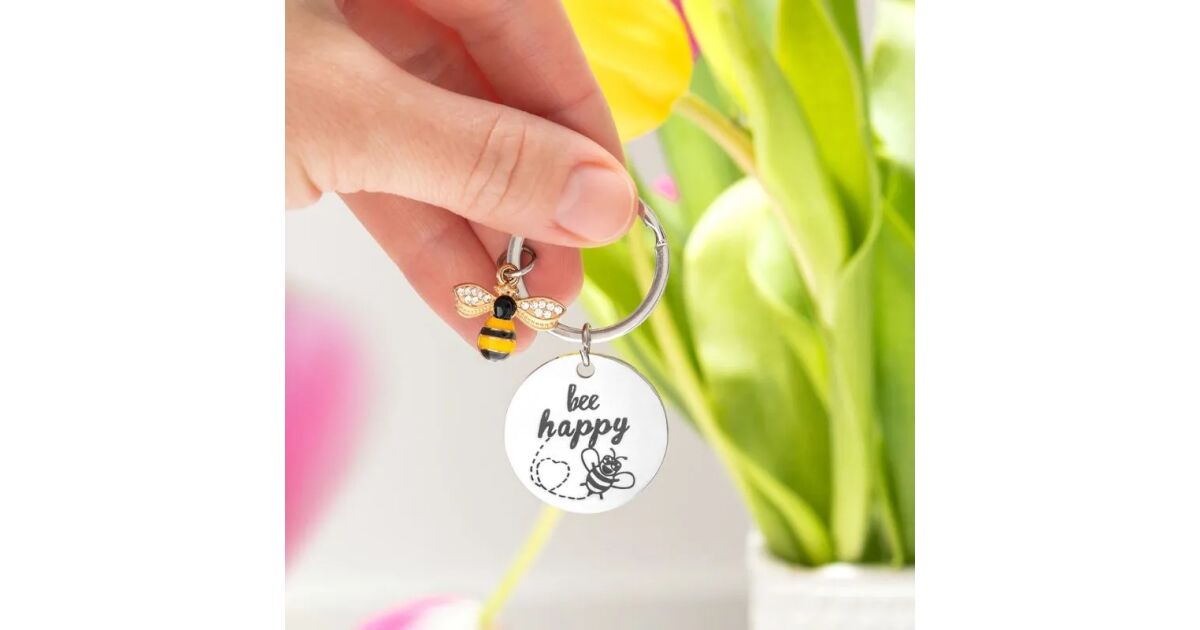 - Design: Fém tábla "Be Happy" üzenettel és méhecske charm-mal