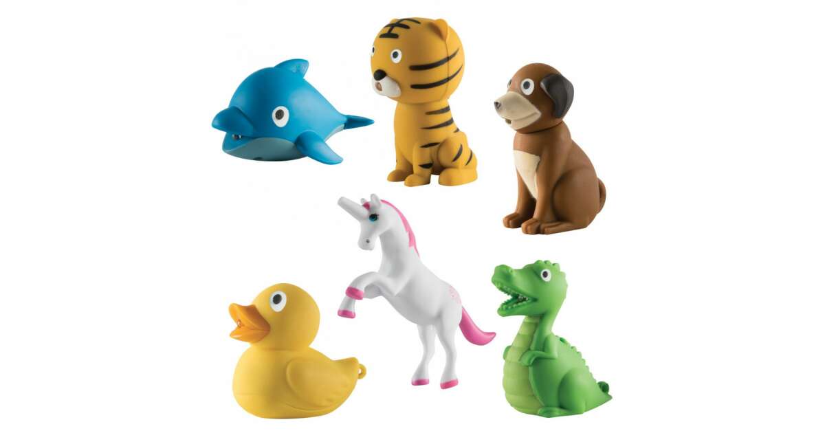 - 6 különböző, aranyos állatfigura közül választhat: delfin, tigris, kutya, egyszarvú, kacsa és krokodil. 🐬🐅🐕🦄🦆🐊