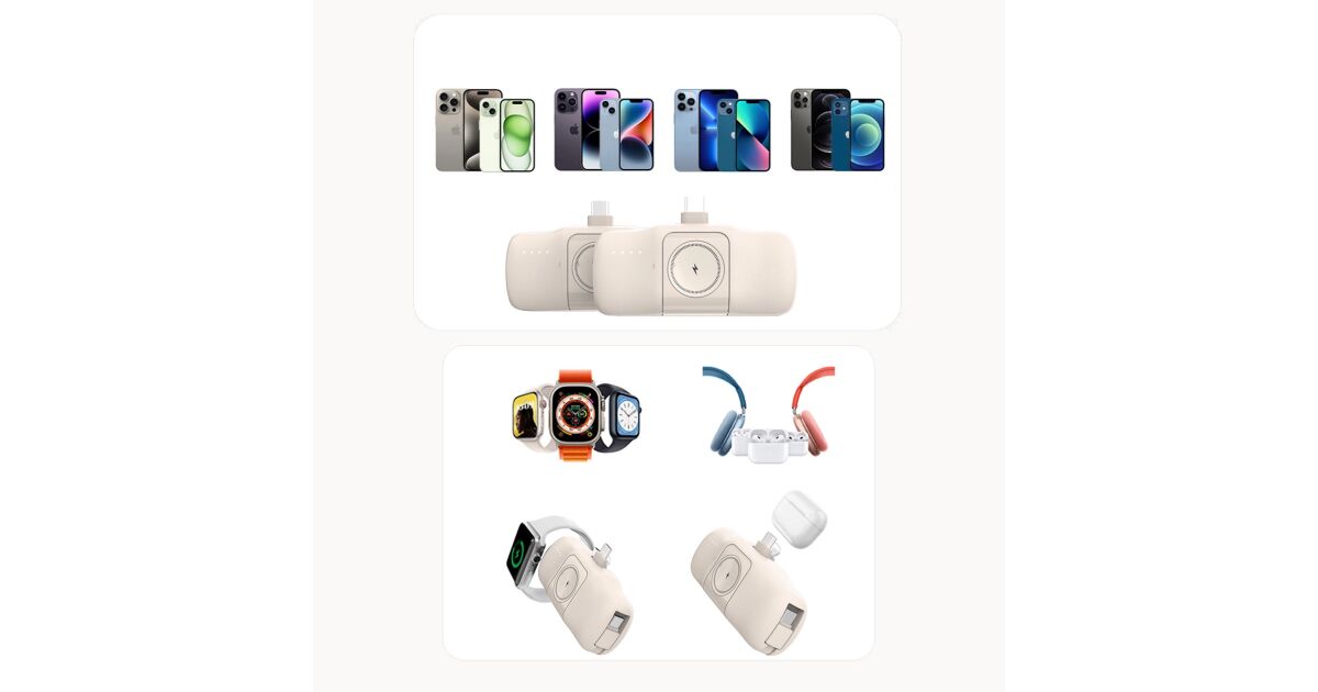 - Sokoldalúság: A beépített Type-C kábel és a vezeték nélküli Apple Watch töltés révén számos eszközt tölthetsz vele.
