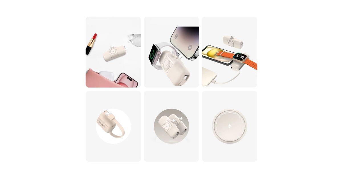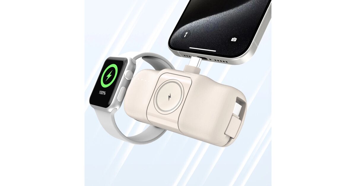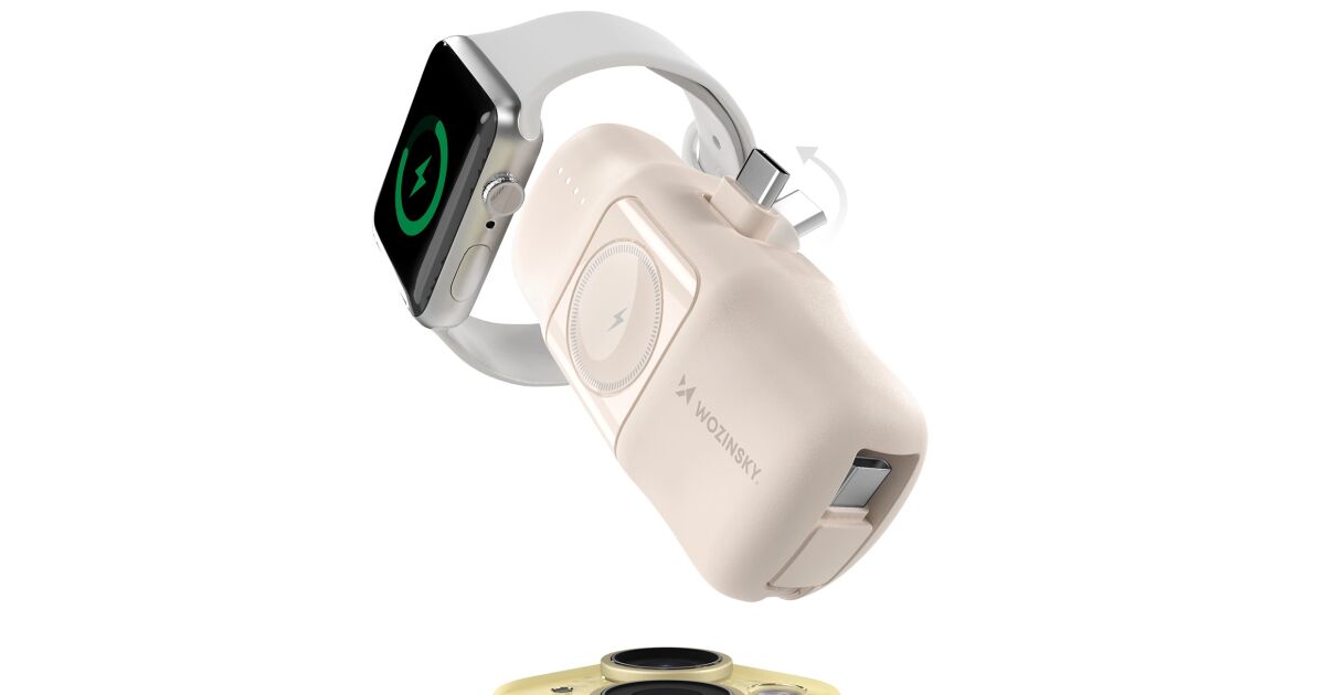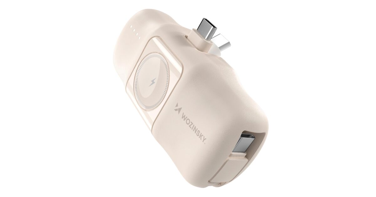 Ezt a terméket így is ismerheted: Wozinsky WF16-YCS mini powerbank 5000mAh 15W Type-C csatlakozóval, beépített Type-C kábellel + vezeték nélküli Apple Watch töltés - bézs
