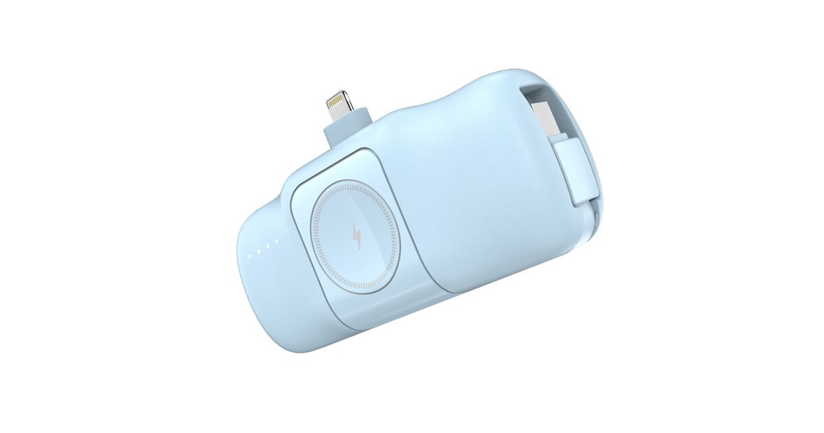 Wozinsky WF16-YLS 5000mAh 15W Lightning Mini Power Bank beépített USB-C kábellel és Apple Watch töltővel - kék
