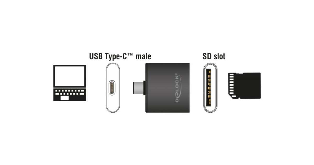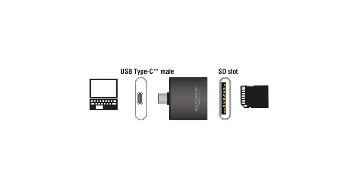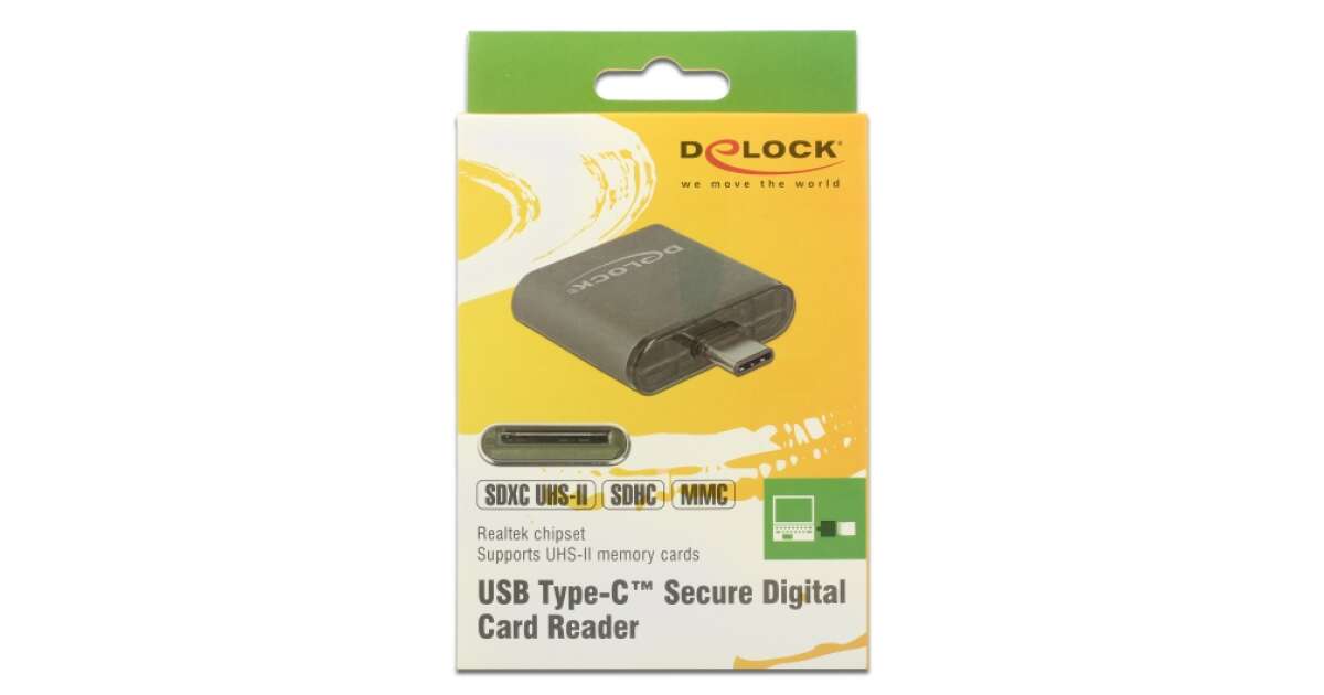DeLock USB Type-C SDHC/SDXC UHS-II/MMC Single Slot Card Reader Black 91498 leírása