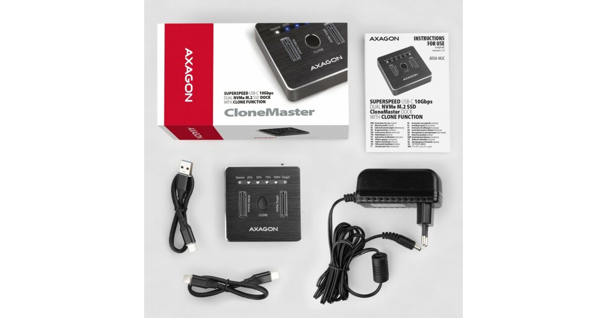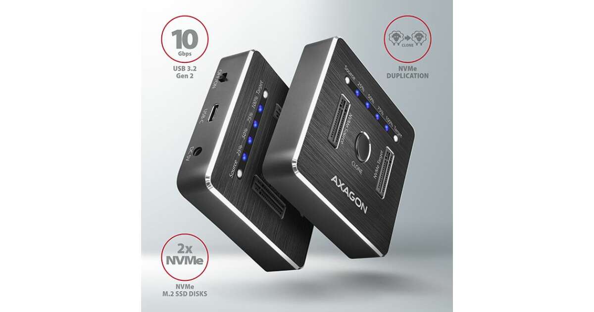 Axagon ADSA-M2C Dual NVMe M.2 SSD dokkoló: Két NVMe M.2 SSD egyszerű és gyors csatlakoztatása ⚡️