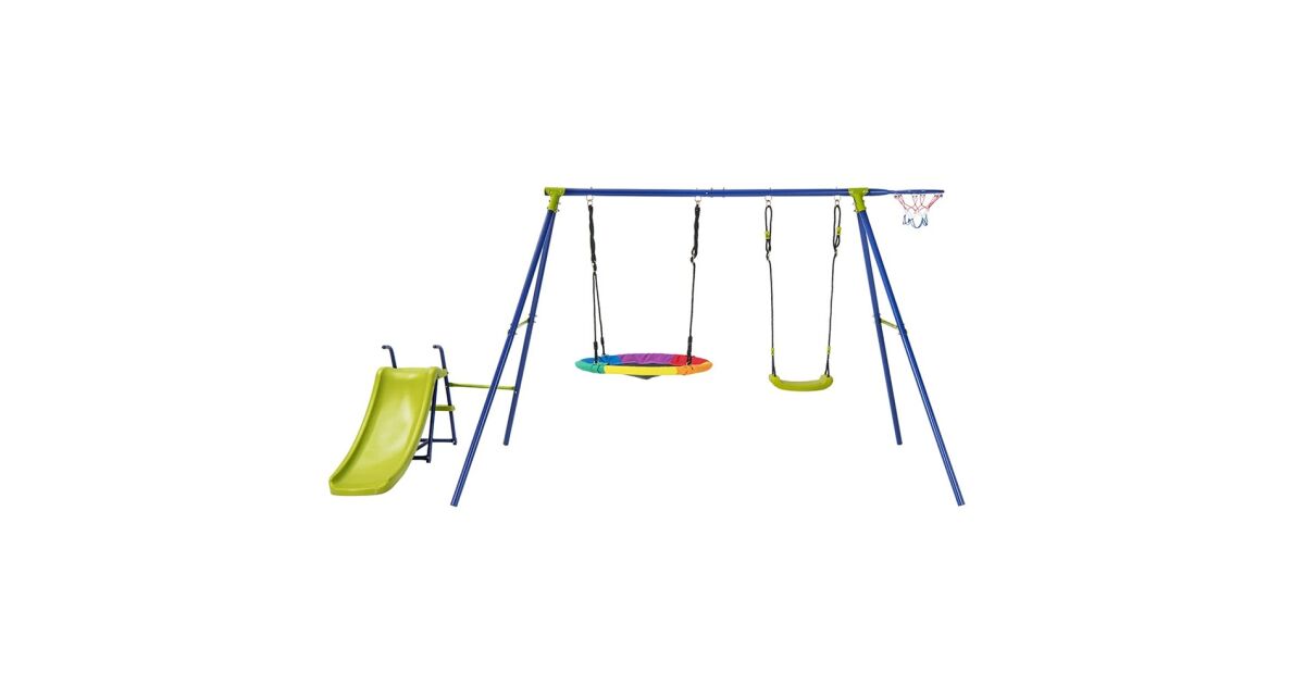 Ez a sokoldalú játszótér szett tökéletes választás a gyerekek számára, hogy a szabadban töltsék az időt, miközben fejlődnek és szórakoznak. A szett tartalmaz csúszdát, fészekhintát, klasszikus hintát és kosárlabdapalánkot, így mindenki megtalálja a kedvére valót.