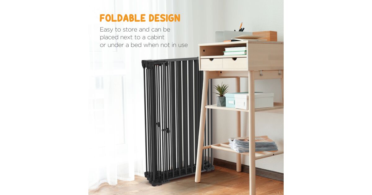 PawHut 2 az 1-ben multifunkcionális kölyökkutya játszókarám és kisállat biztonsági kapu, 6 panel, kisállat edzőkarám dupla zárral ellátott ajtóval, összecsukható kerítés, közepes és nagy kutyáknak, 100 cm magas, fekete