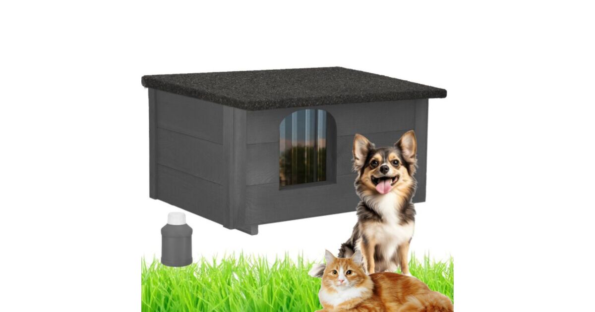 Dechland Szigetelt Kutyaház Lapostetővel - M Méret, Szürke 🐶