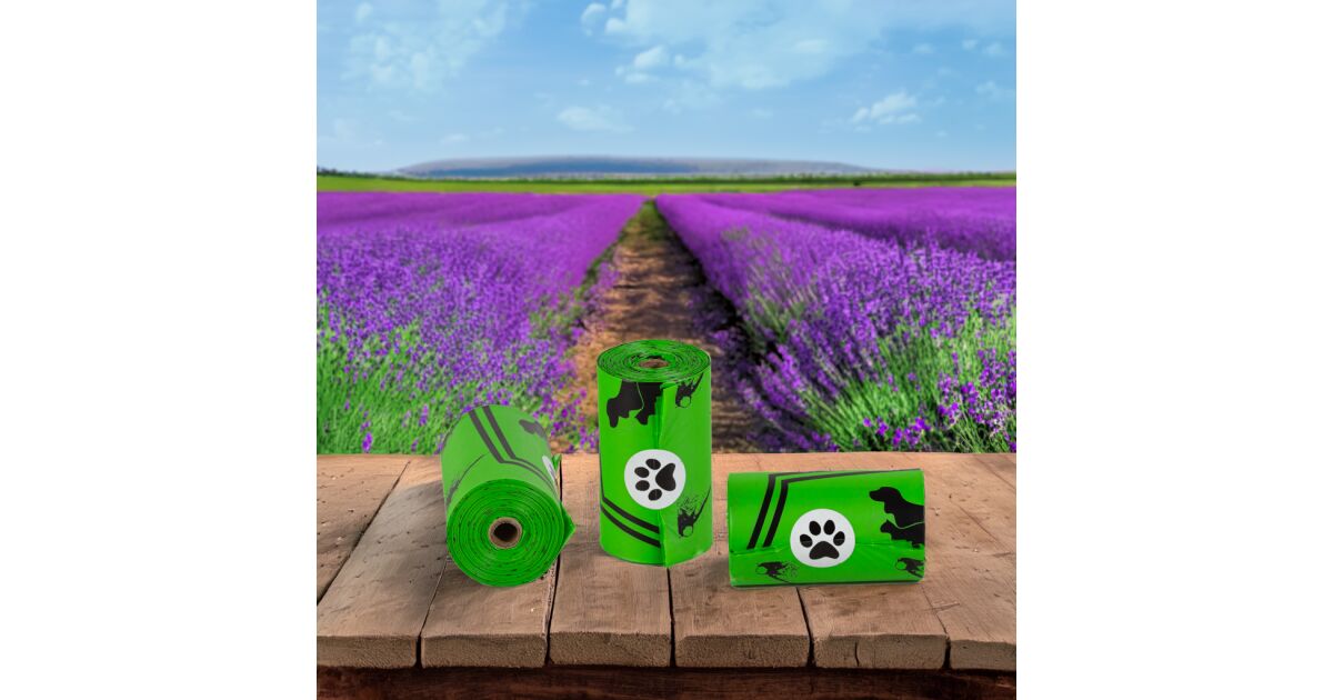 Kutyapiszok zacskó, Biológiailag lebomló – Levendula Illattal | 8 tekercs | 160 zsák, TÜV, 23*33cm