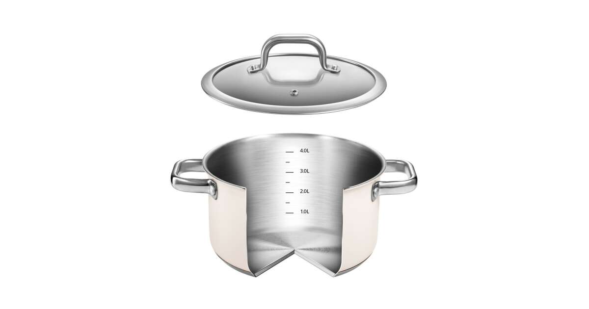 - Alj: Háromrétegű szendvics alj az egyenletes hőelosztásért