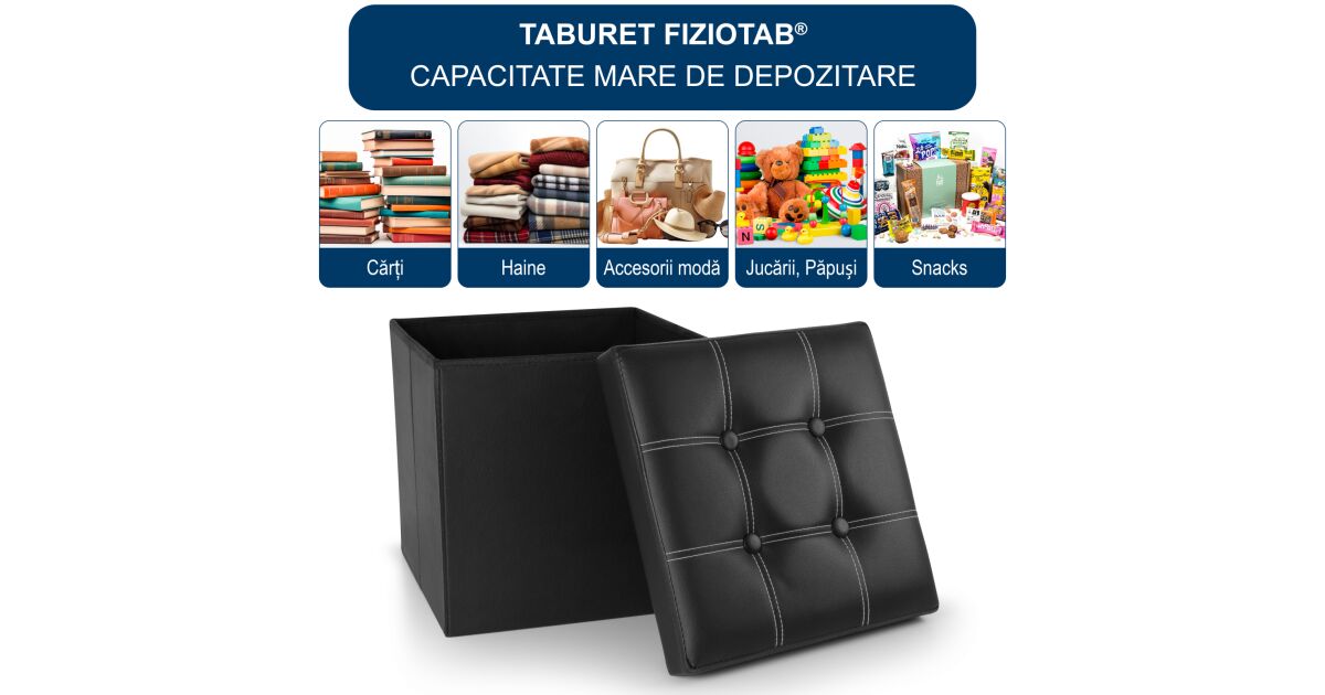 Ez a praktikus FizioTab® puff tökéletes megoldás a helytakarékos tárolásra és kényelmes ülésre egyaránt. Ideális gyerekszobába, dolgozószobába, nappaliba vagy akár a hálószobába is. Remekül elrejti a párnákat, takarókat, játékokat, könyveket és egyéb holmikat.